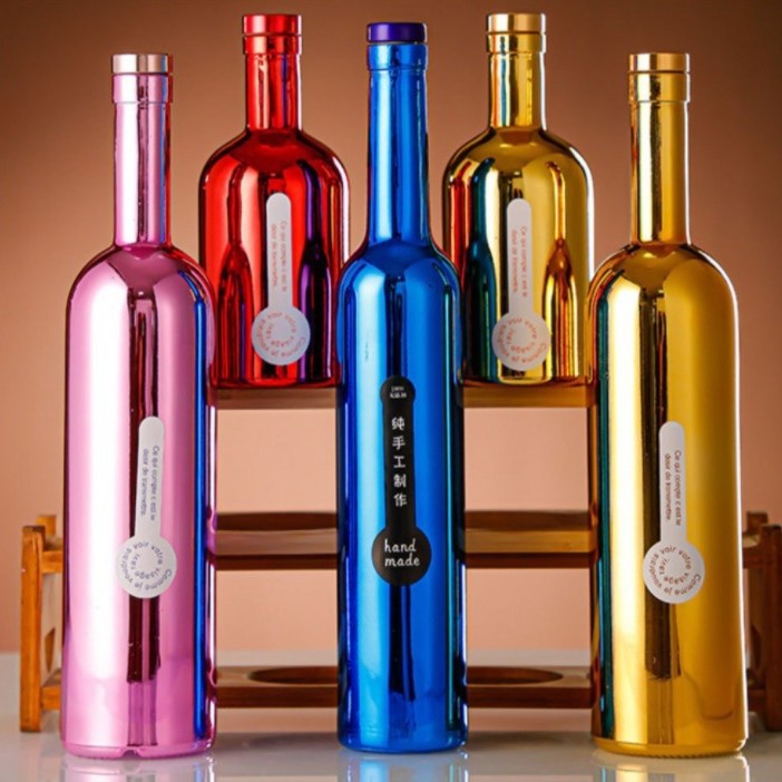外国貿易電気メッキスプレーガラスワインボトルウォッカ赤ワインボトルワインボトルシャンパンボトル蓋付き密封ワインボトル