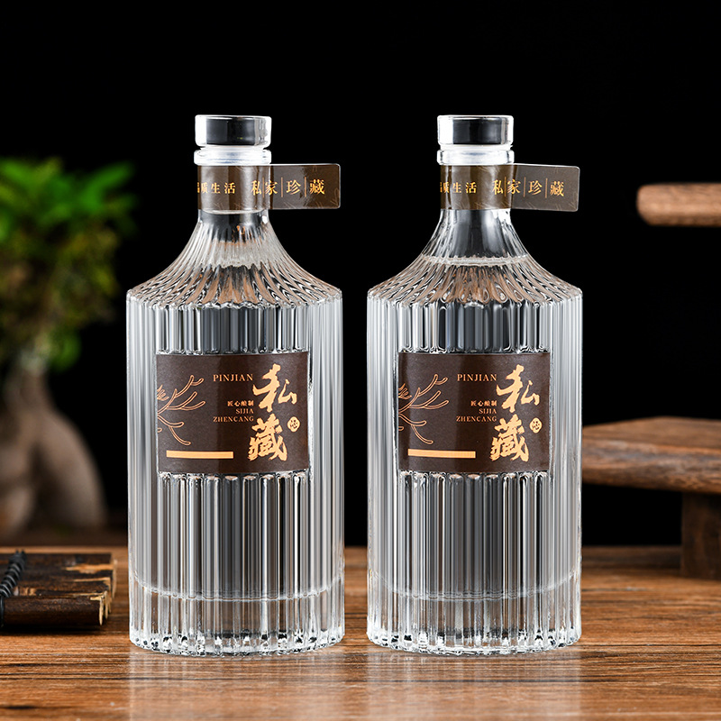 500mlの高級観山酒瓶、厚みのあるプライベートコレクションの詰め替え酒瓶、蓋で密封され、ロゴをシルクスクリーン印刷できます。
