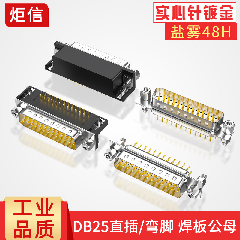 工業DB25溶接板母座DR25は足を曲げて90度直角にpin 25針のオスと口を合わせて接続します。