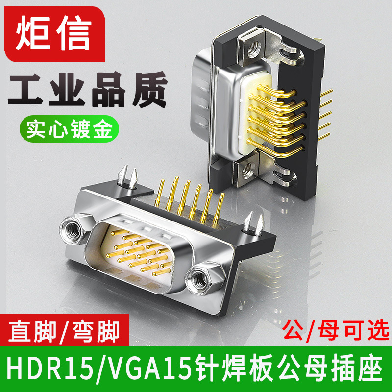 VGAプラグ3列15ピン90度ベンドhd 15溶接板雄座15pインターフェース回路基板DB15ピンコネクタ
