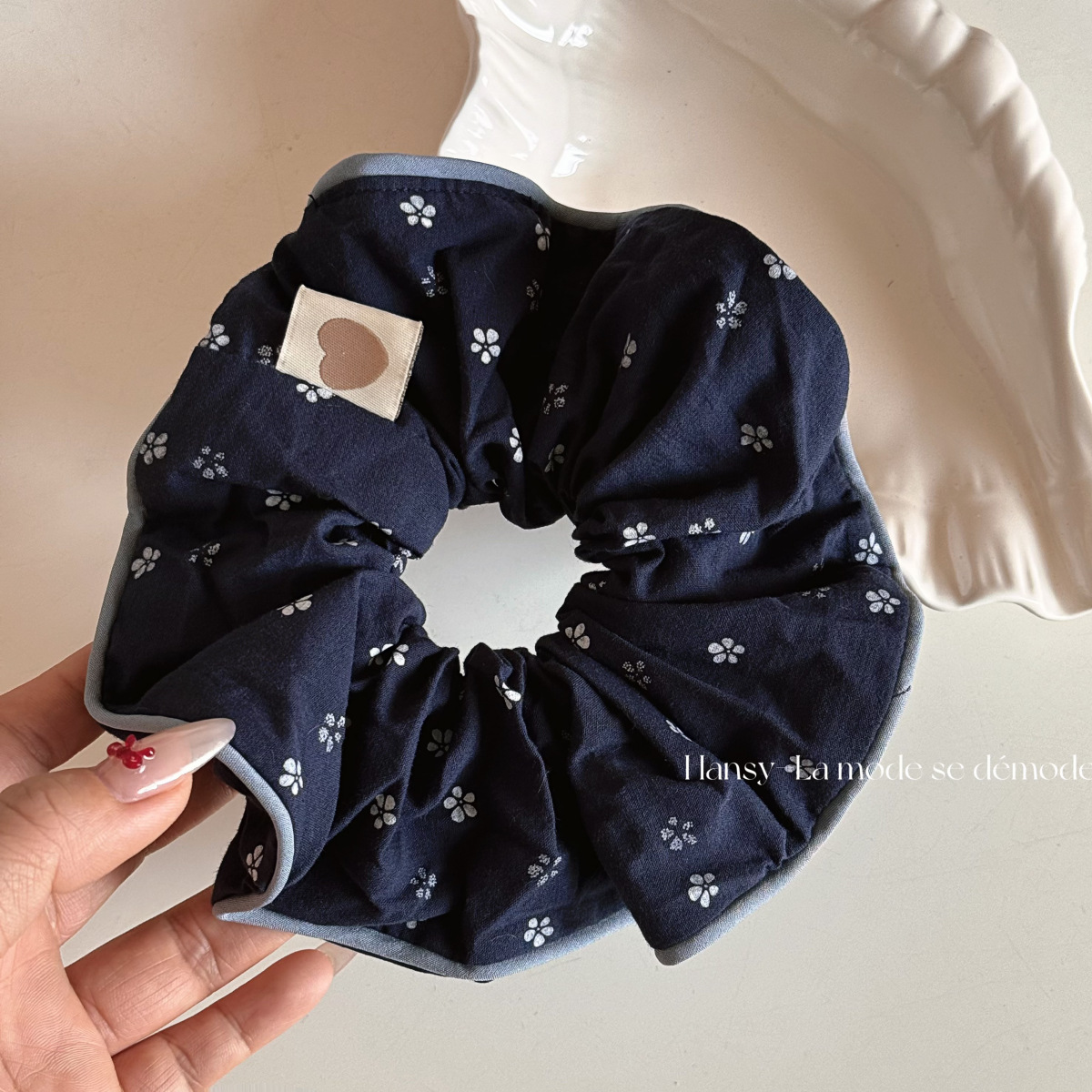 洋気紺色プリント髪輪高級感布芸髪ひも馬尾髪ひも甘い学院風髪ひも