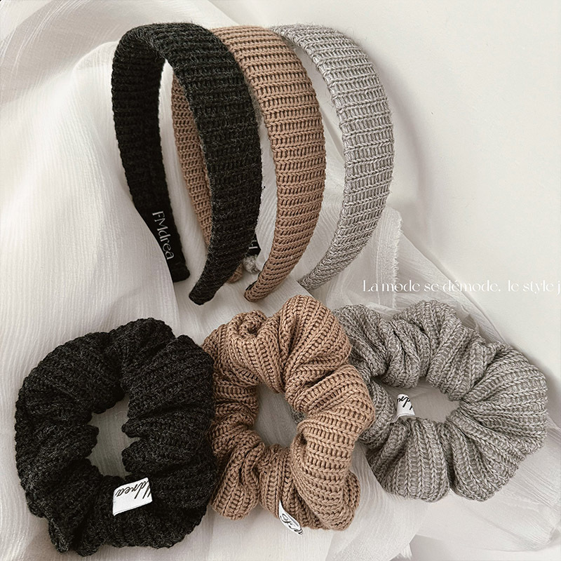 韓国版毛糸ストライプ秋冬編みカチューシャ純色カチューシャ女性新作カチューシャ外出シンプル気質カチューシャ