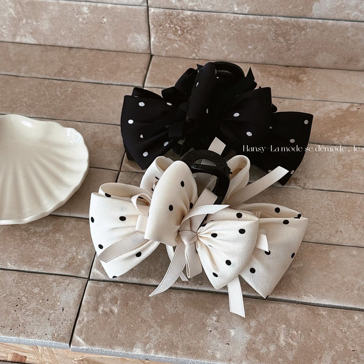 黒と白の水玉模様のリボン気質サメクリップヘップバーンスタイルの女の子の後頭部ヘアクリップファッショナブルで多用途なヘアアクセサリー