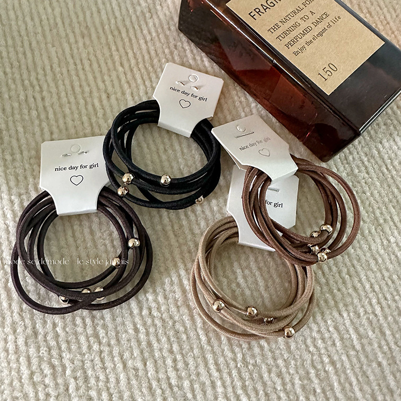 5つの基本的な金属球の皮筋の女性の高い馬尾の髪のひものシンプルな髪のひもの質感の髪飾り