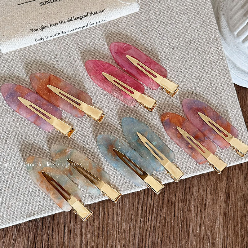 水滴凱標の精緻なシンプルなヘアピンの大理石の紋様の質感に合わせて前髪を挟んで髪飾りを飾っています。