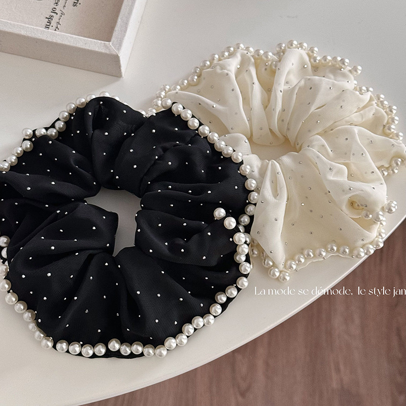特大号真珠満天星大腸髪輪団子頭ひも皮筋女髪ひも高級感馬尾頭飾り