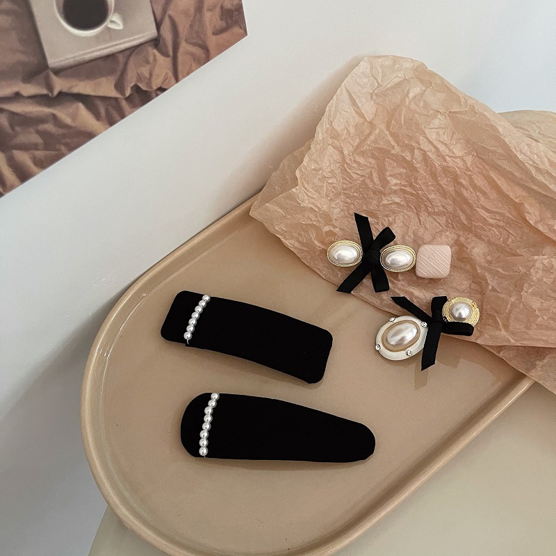 韓国版黒系真珠bbクリップ後頭部ヘアピン女性前髪クリップ