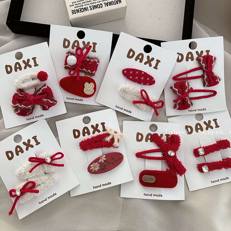 蝶結びの幾何学のヘアピン韓国版の祝日の新年の赤い子供のぬいぐるみは赤ちゃんのヘアピンを入れて前髪を挟みます。
