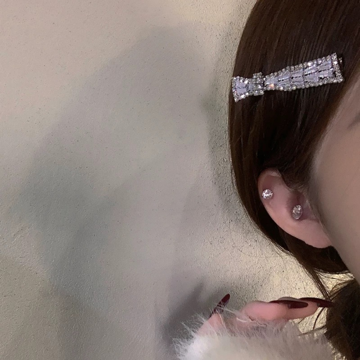 韓国系はダイヤモンドの蝶結びのヘアピンを入れています。