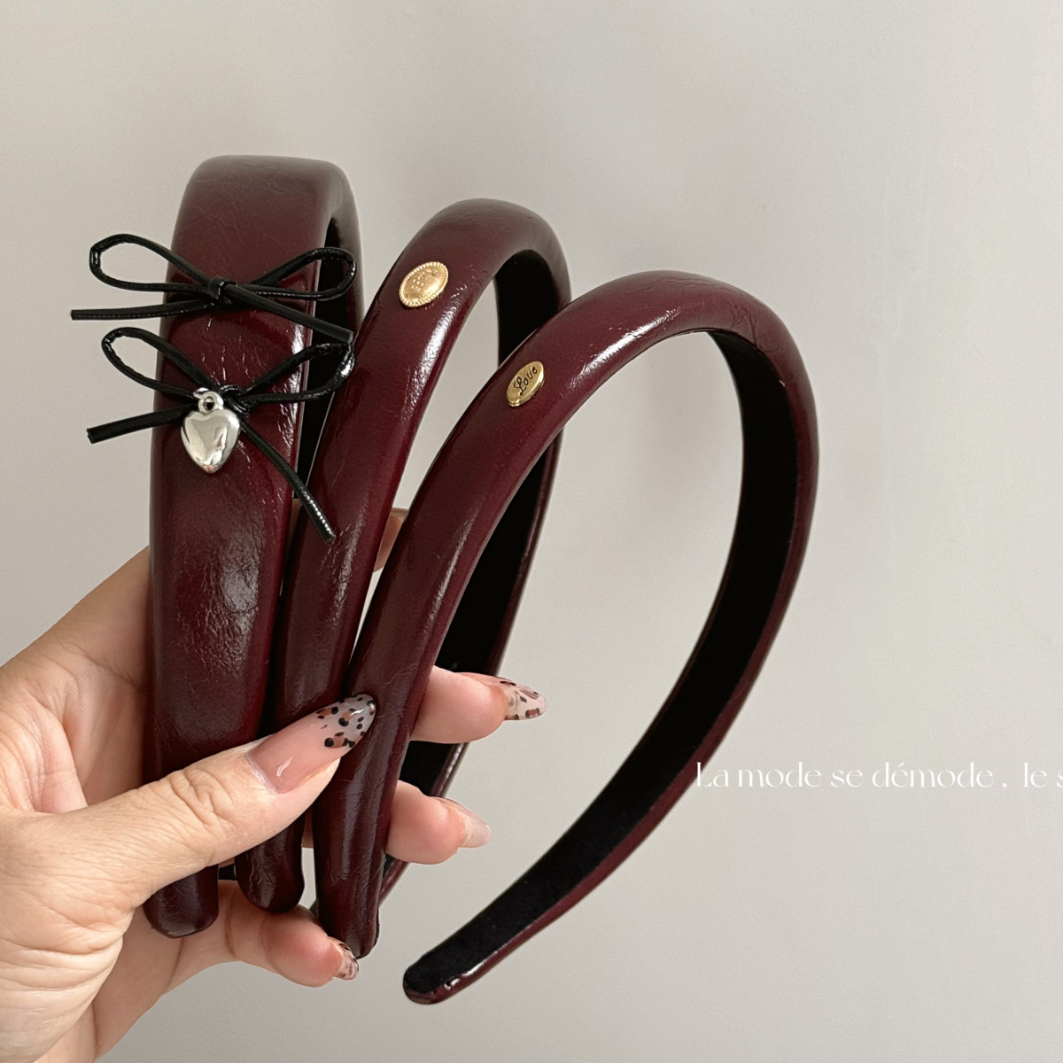 ワインレッドの皮質蝶結びのカチューシャ女性秋冬高頭トップカチューシャレトロシンプル気質髪飾り新作