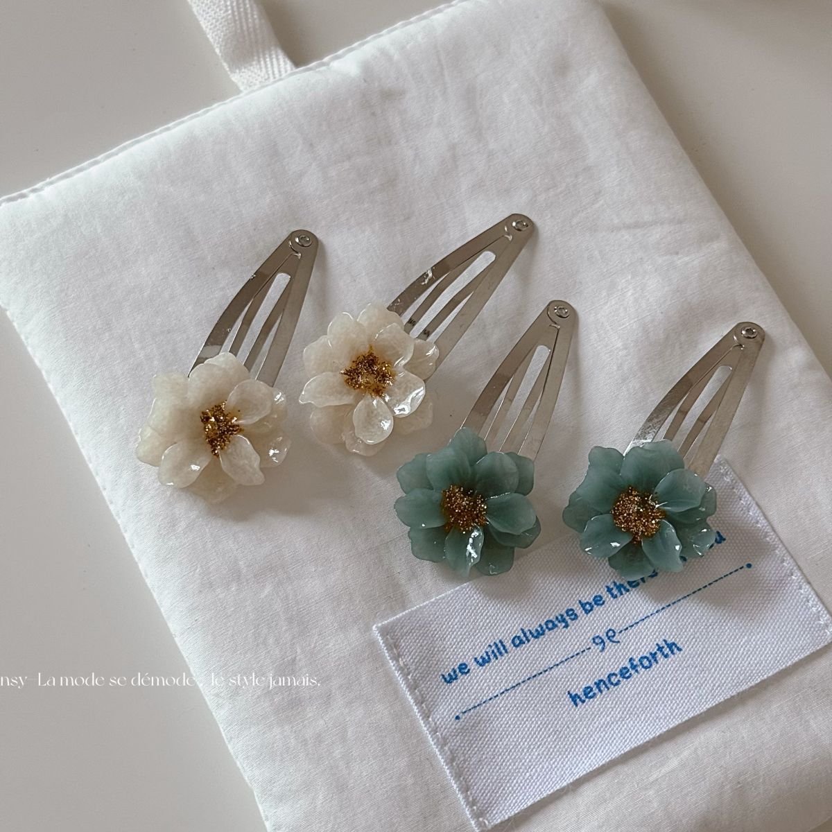シンプルな緑と白の桜のヘアピン BB クリップ甘い女の子かわいい前髪クリップ花サイドヘアピンヘッドバンドヘアアクセサリー