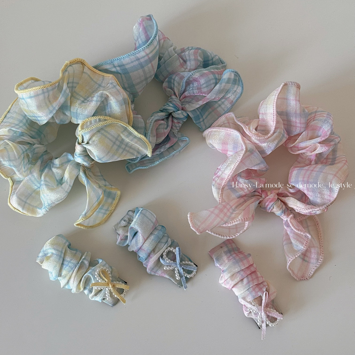 甘い格子縞の蝶結びの髪はレトロでシンプルです。