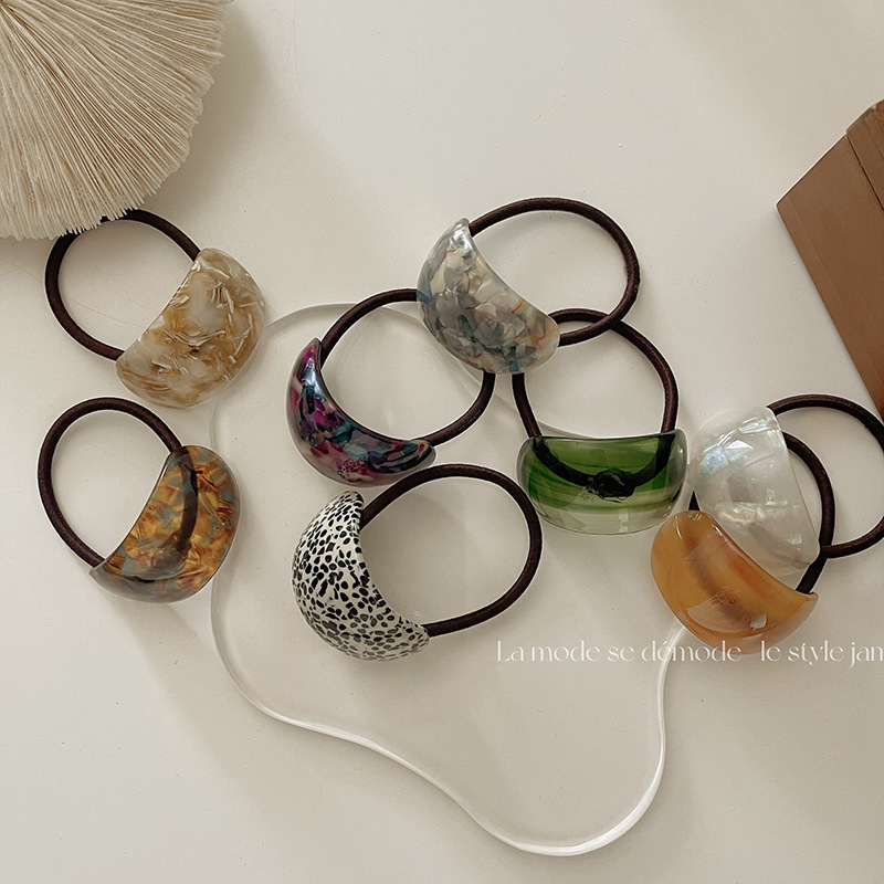 韓国ブロガー風のゆったりとしたスタイルのポニーテール用ヘアゴム、シンプルで万能なエレガントな曲線型アセテートヘアゴム