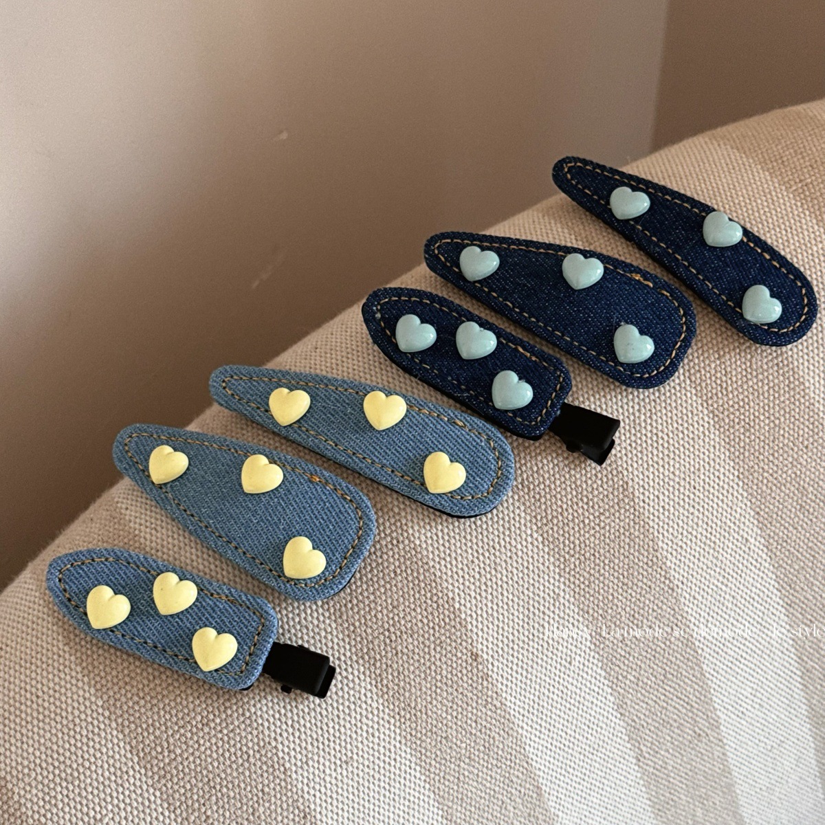 心のデニムの新型のレトロなデニムのカラーの愛のbbクリップの甘い前髪のサイドクリップの髪飾りの女性の髪飾り