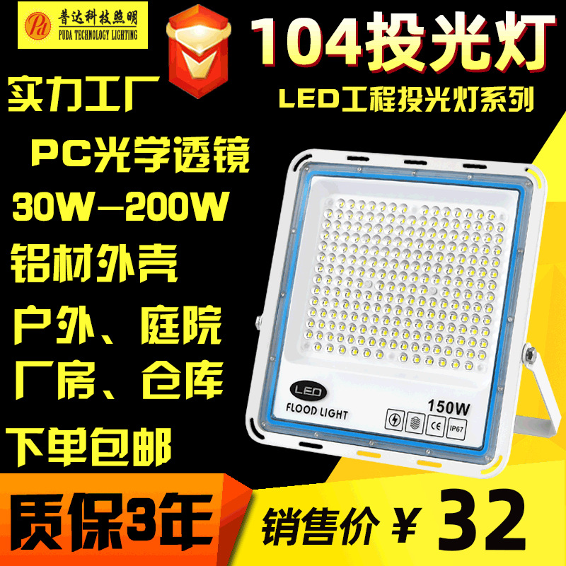 LEDレンズ投光器屋外104シリーズ防水ハイパワー投光灯庭倉庫照明灯