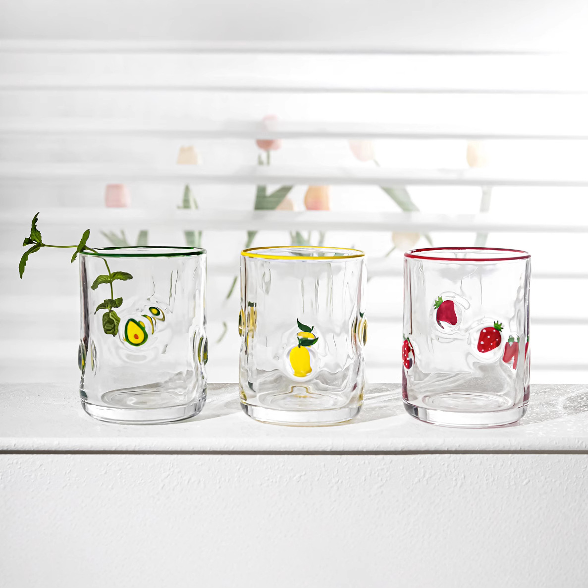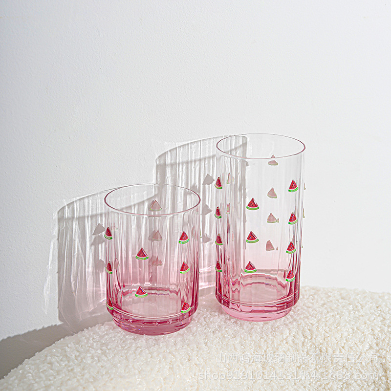 高颜値カラークリエイティブグラス家庭用高级感うがいカップ透明ジュースカップガラスかわいい手作り水