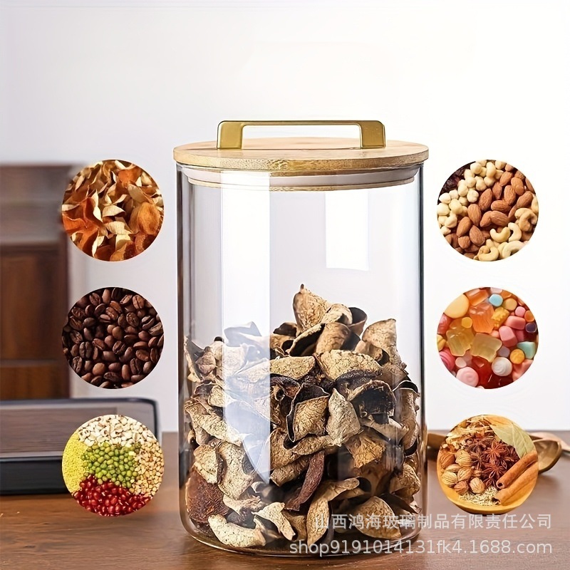大容量密封缶透明茶缶家庭用竹蓋密封缶高ホウケイ酸ガラス保存缶