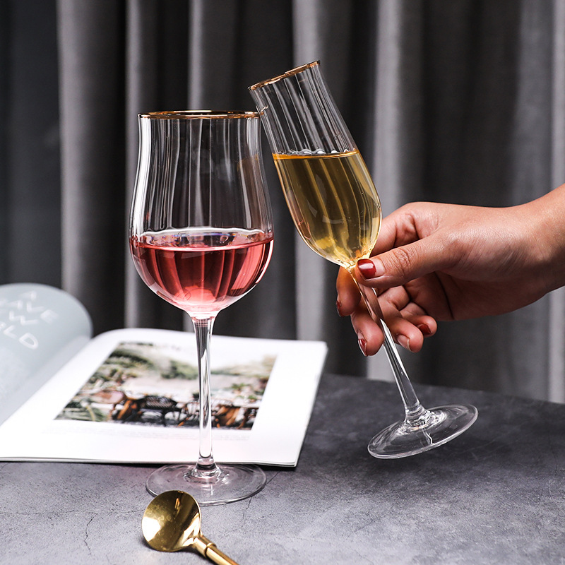 家庭用ギフトシャンパン高足カップ金色メッキワインガラスコップ創造性透明水晶ワイングラス