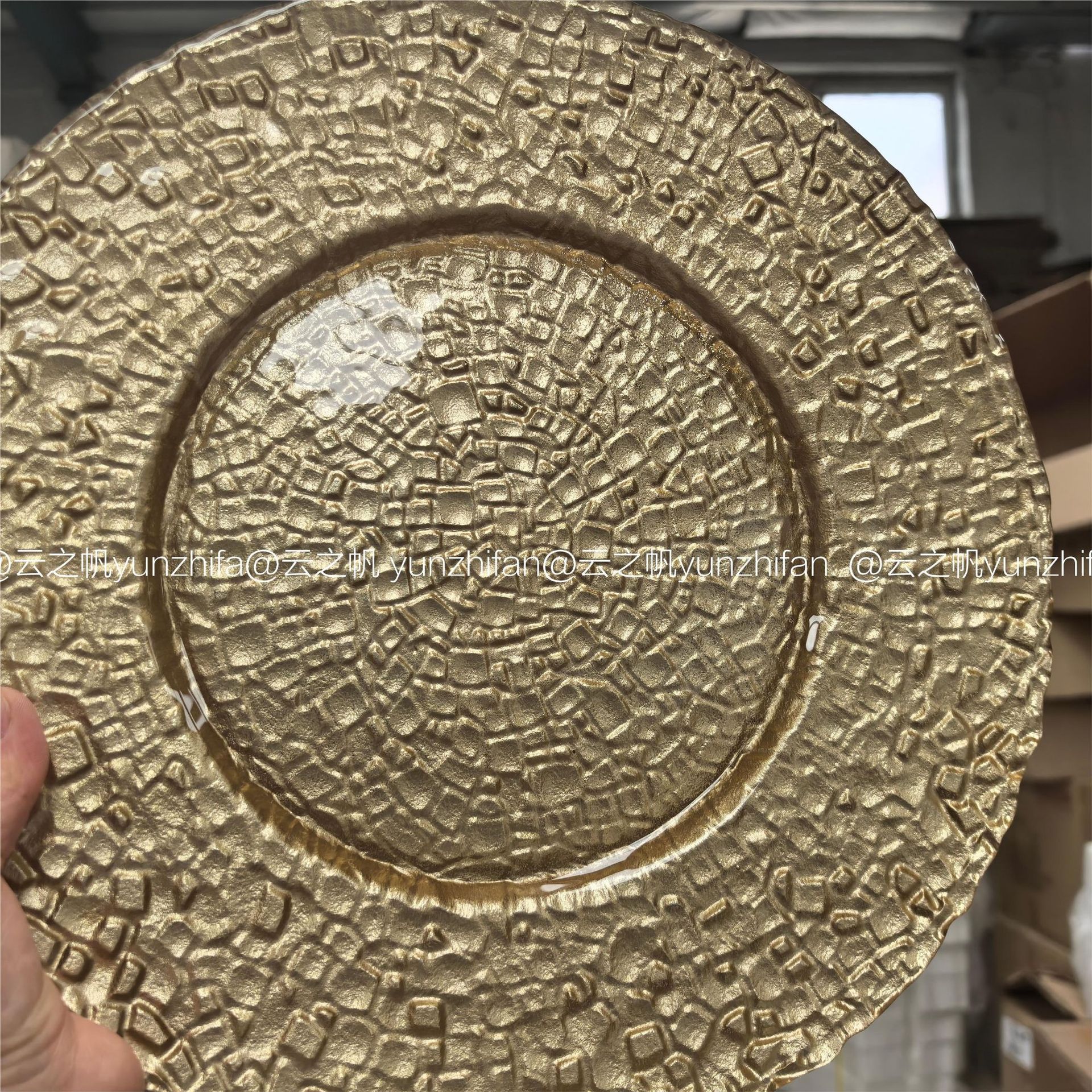 【ホンハイ】サプライチャージャープレート不規則なゴールデンガラスプレートウェディングホテルパーティープレートトレイ