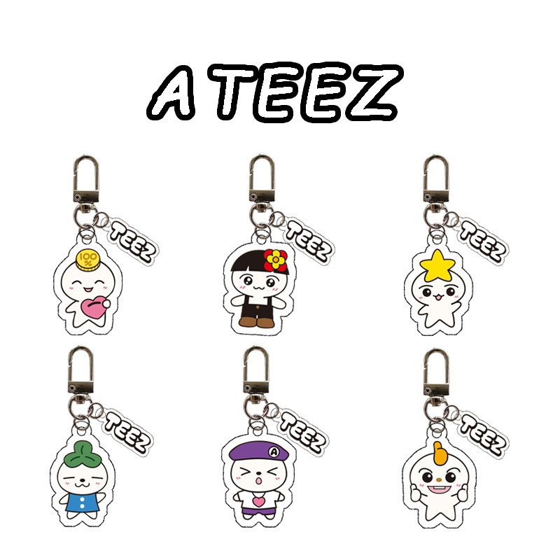 Ateez TEEZ-MONのアニメの子供の鍵はアクリルの2つのセットのカバンのペンダントのスターの周を掛けます。