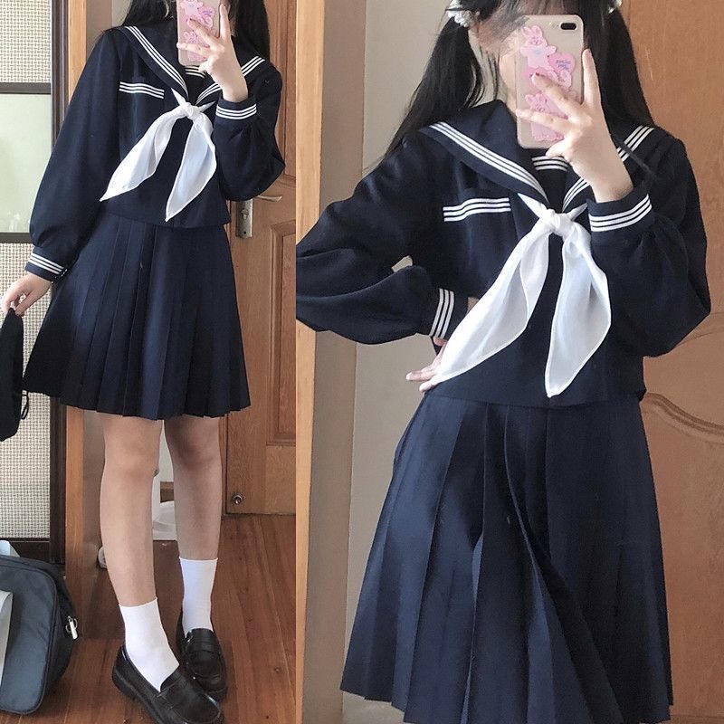 現物の楊さんは同じタイプのjk制服のスカートを超えて、紺色の秋装のセーラー服の正規版の基礎モデルの正統な学校のスーツの女性を提供します。