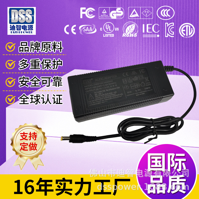 直供大容量7列リチウム電池充電器29.4v3a過電流保護cecccsaaetlなどの認証付き