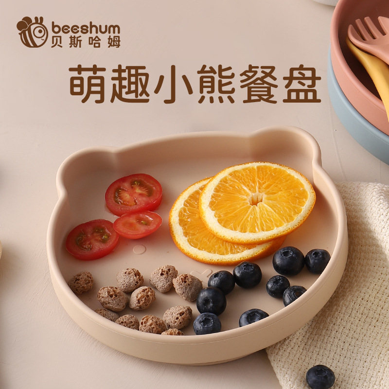 Bee shumベアーの赤ちゃんの食事の皿の吸盤の一体式のシリコンの子供の食事の皿の赤ちゃんの補助的な食事の碗