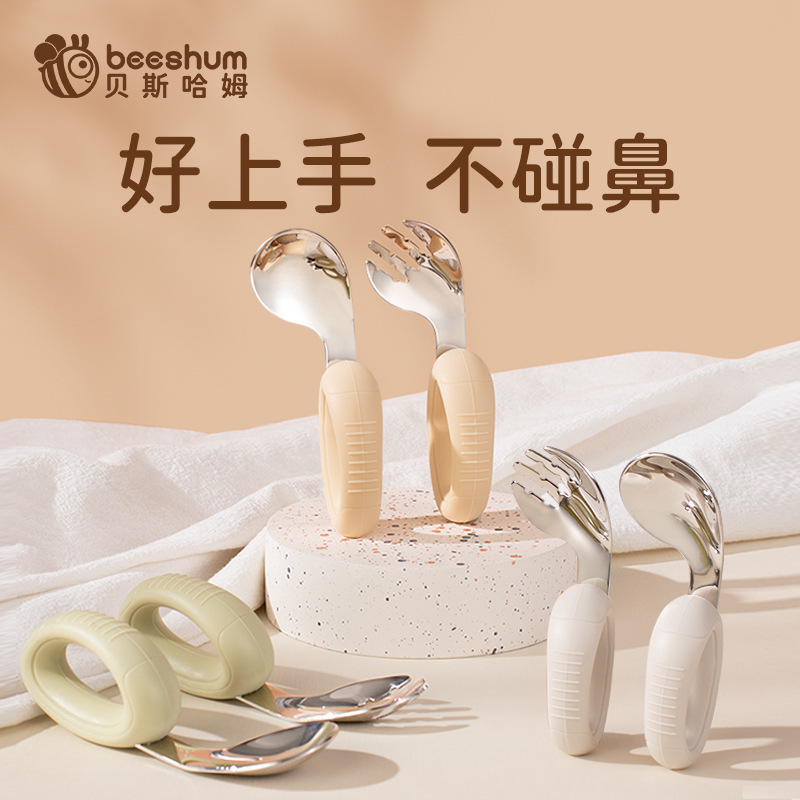 Beeshumベースハムベビースプーンは食事を習ってスプーンを訓練して自主的にステンレスの子供の補助スプーンを食べます。