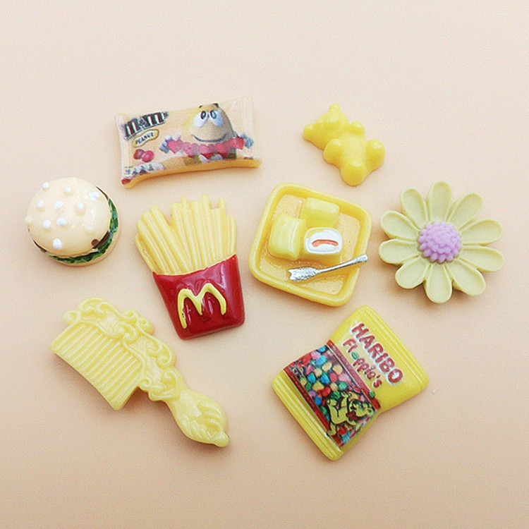 国境を越えて人気のある黄色のセットシリーズの樹脂部品はキャンディハンバーガーベアーの手作りdiy材料の卸売りをシミュレートします。