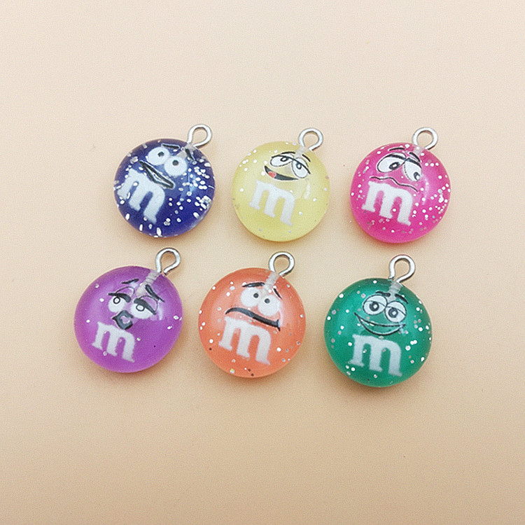 クロスボーダーは2.2cmのアニメm豆の表情の丸いブランドの樹脂のペンダントの材料のキーホルダーの携帯電話の縄diyの部品を推薦します。