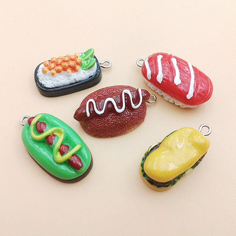 日韓クロスボーダー模擬食遊シリーズアクセサリー手作り材料ハンバーグ寿司diyペンダント樹脂部品卸売り
