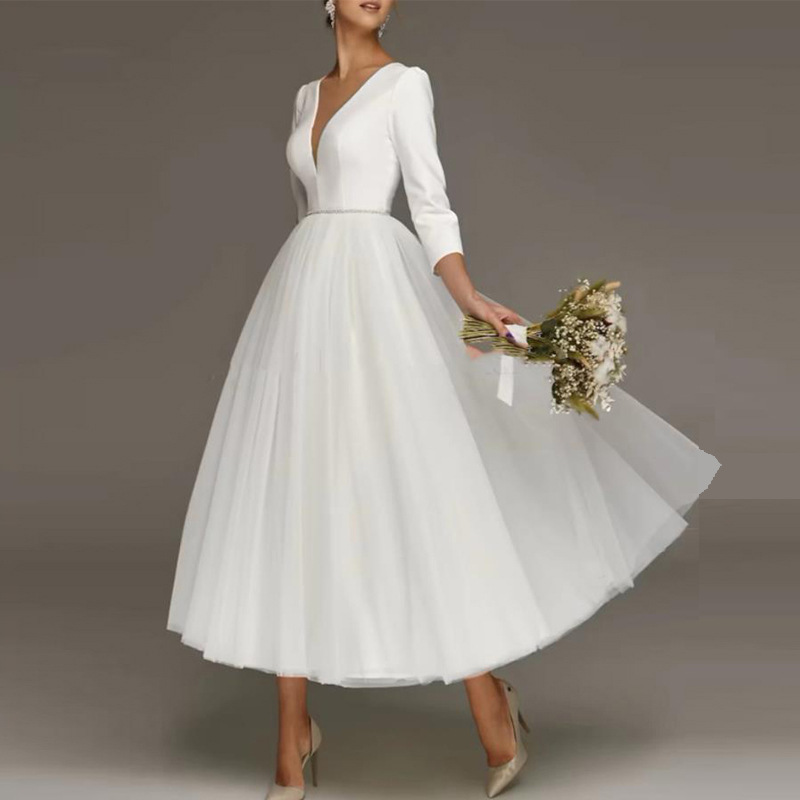 2025年新作 クロスボーダーウェディングドレス 東南アジア向け Amazon ワンピース チューブトップ 無地 レース ブライダルウェディングドレス