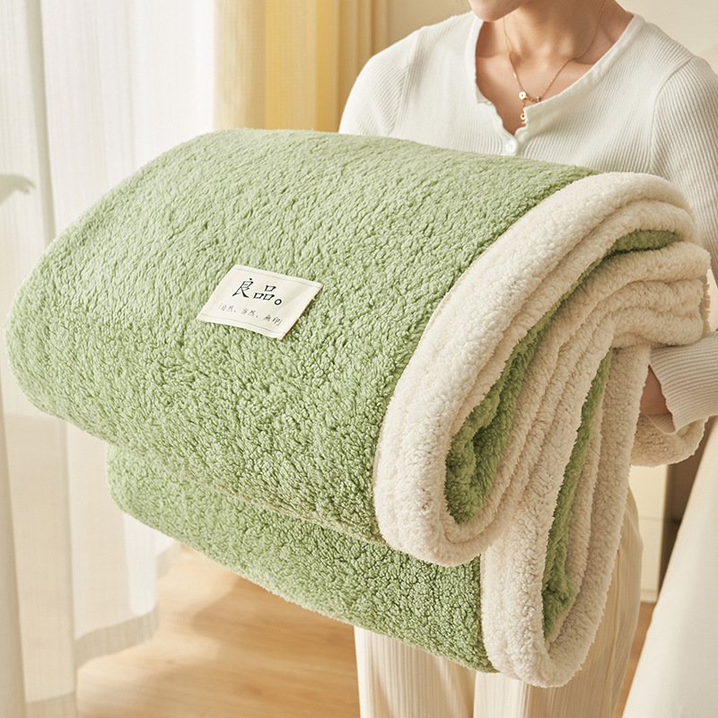 外国貿易は国境を越えて牛乳の豆の絨毯の格子のフランジサンゴの絨毯の小さい毛布の事務室の昼寝の絨毯を厚くします。