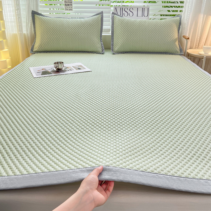 新しいタイプ A クールシルクアイスビーンズマット 3 点セット無地折りたたみベッドシーツベッドスカートマット卸売