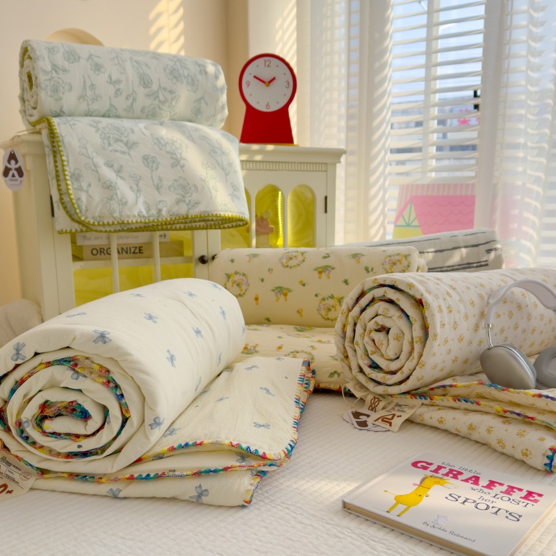 2024新型綿六層糸夏涼は綿タオルで空の毛布子供の昼寝毛布ガーゼ毛布に覆われている