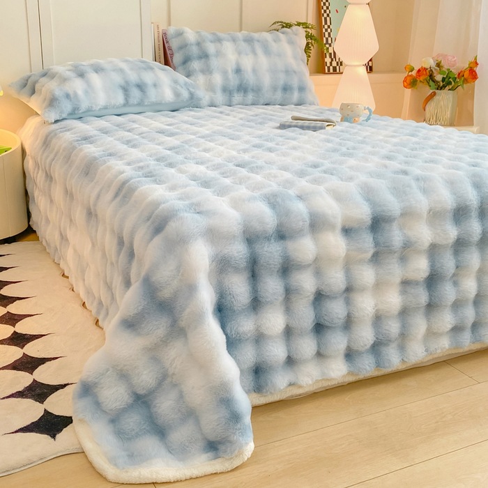 外国貿易の軽豪華な厚い泡ウサギのぬいぐるみのシーツの単品の純色の丸い角の牛乳の絨毯のベッドの蓋のサンゴの絨毯
