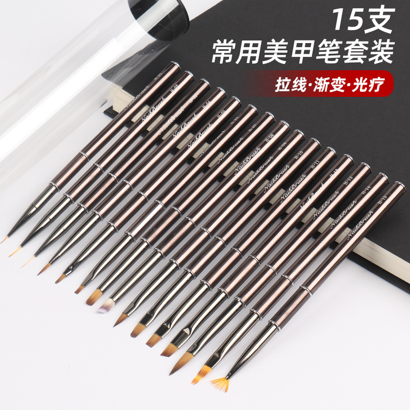 金属棒ネイルアート常用工具ブラシセット15本グラデーションペン光治療ペン絵花ペンスタンプペン