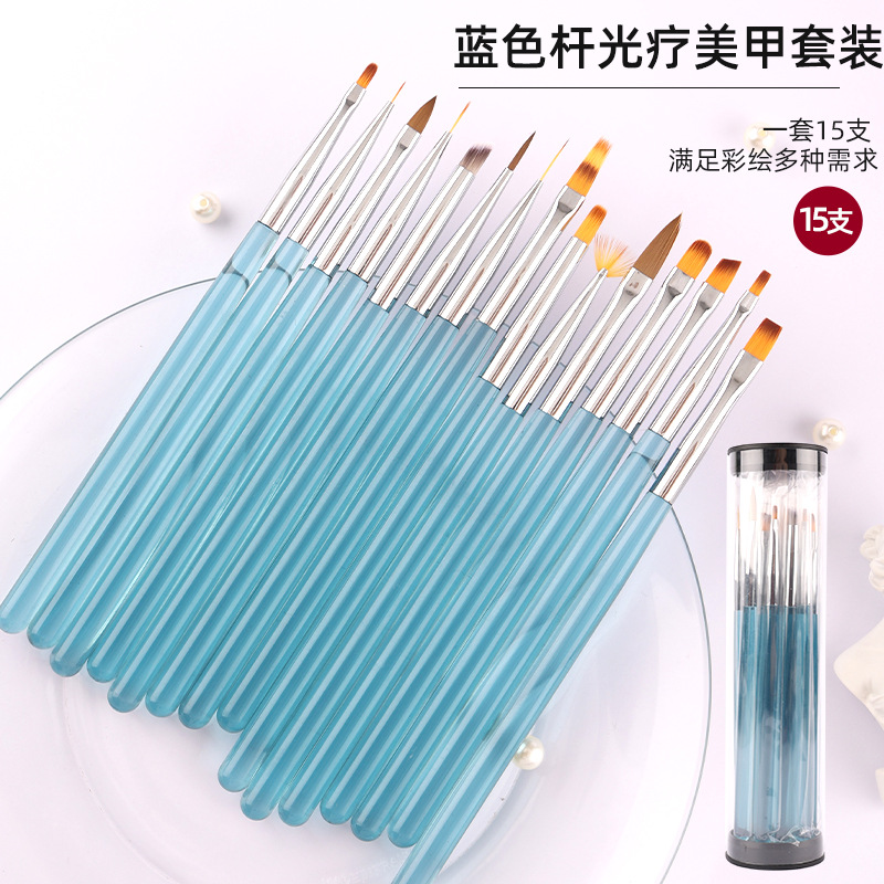 アマゾンブルーネイルアート光線療法ブラシセット アクリル15本フルセット光線療法フラワーブラシ