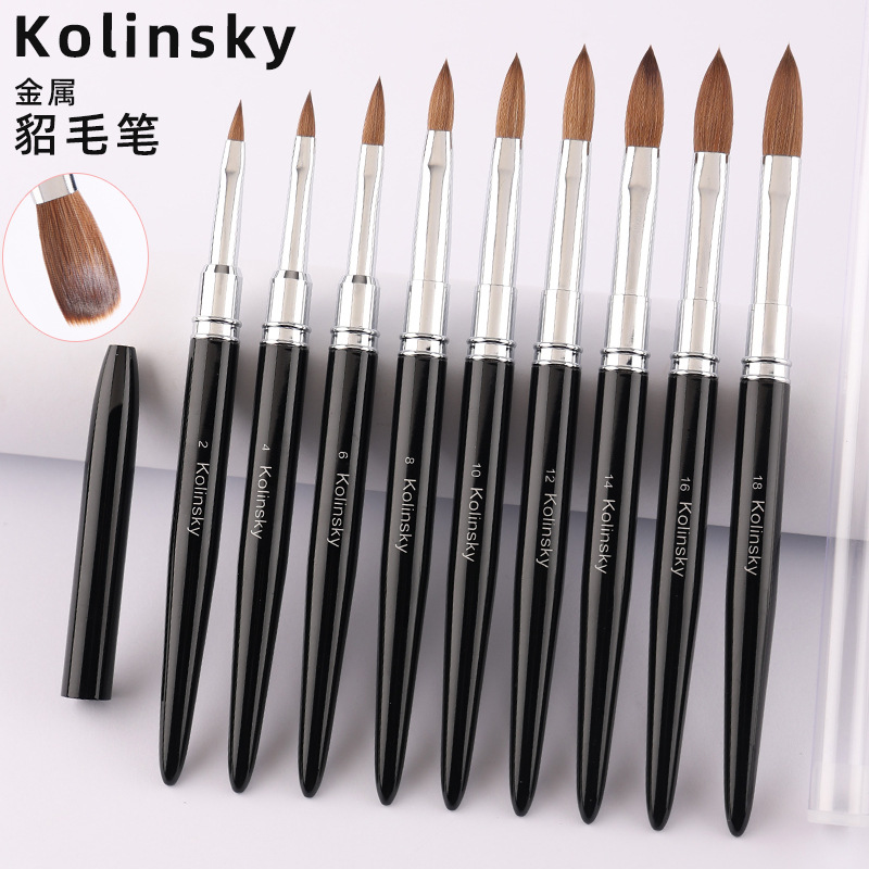 アマゾンの純粋なミンクの毛のネイルの水晶の彫刻の筆のシベリアの純粋なミンクの毛のペンのkolinskyの丸い頭の水晶のペン