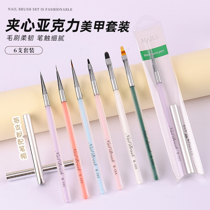 新型ネイルペンセット6本マカロン色サンドイッチ棒彩色画画花引き線筆秋菊筆花卉筆