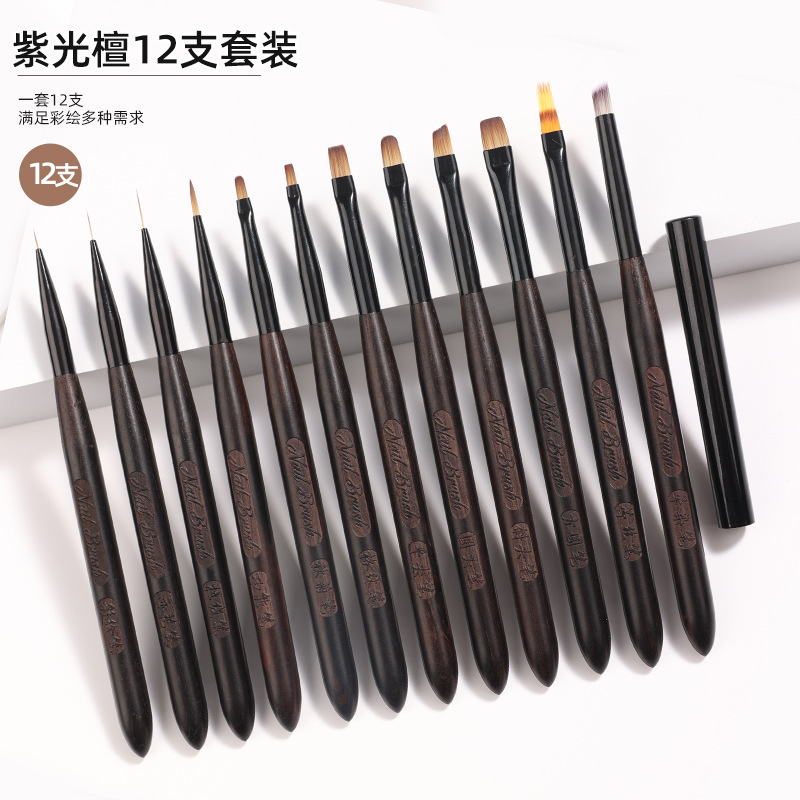 新品紫光檀12本ネイル専用ブラシセット檀木大方円筆秋菊筆色絵光治療筆
