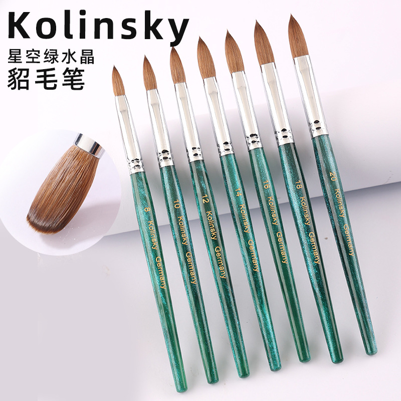 メーカー卸売りシベリアネイルクリスタル彫刻ペン星空緑kolinskyミンク毛ネイルペンカスタマイズ