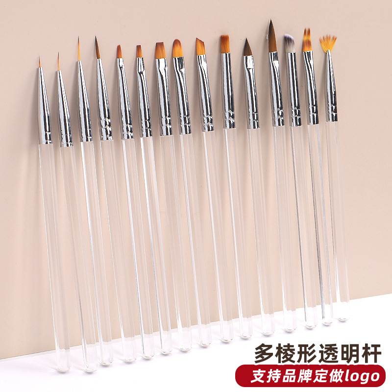 国境を越えた新しいネイルツールブラシセット赤模造翡翠棒平頭光治療筆秋菊筆線引きペン