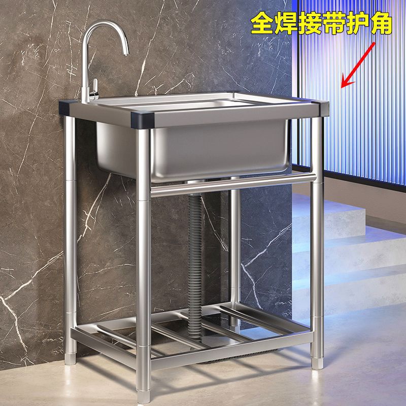 業務用厨房の洗面器とステンレスの水筒のスタンドが一体になっています。