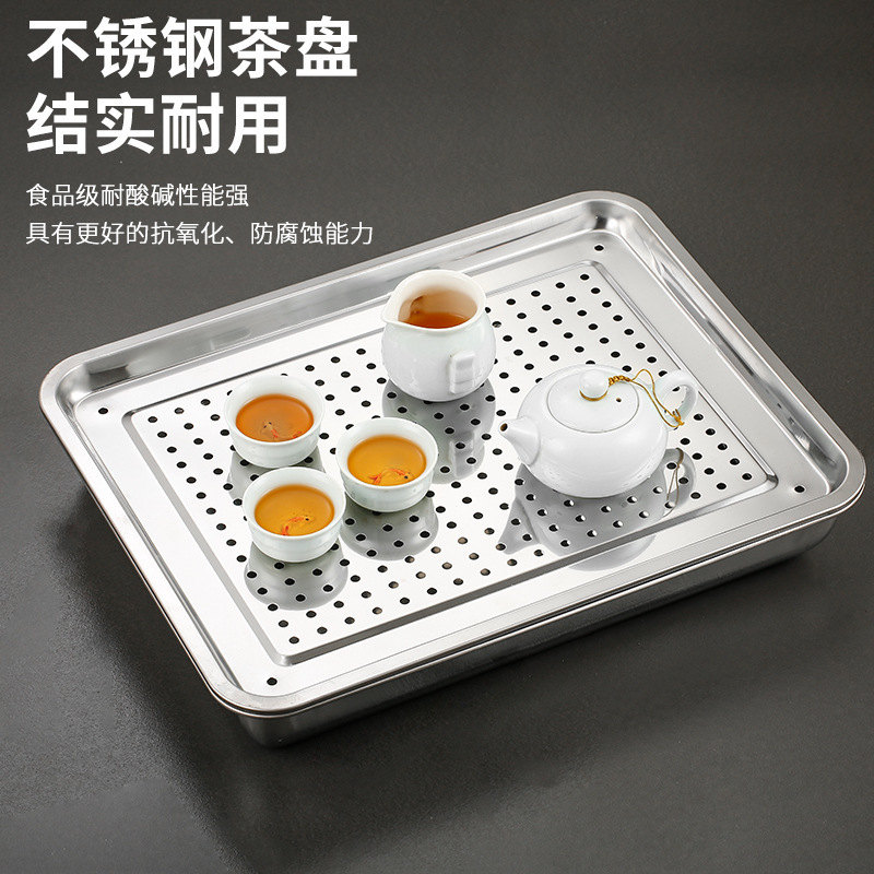 ステンレス製の水たまりの長方形のトレーの茶の皿の二重の濾過の皿の業務用の油の漏れの皿の穴の蒸し皿の鉄の皿
