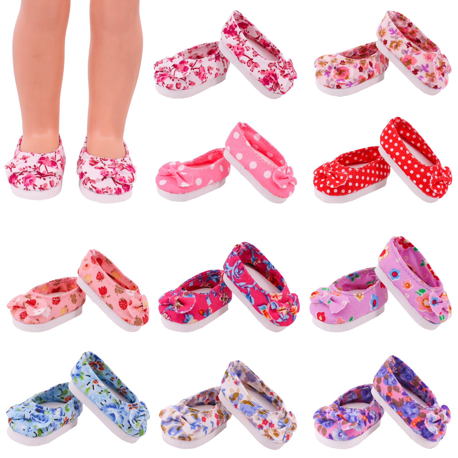 新しい14インチのアメリカの女の子の服の部品の靴の花のキャンバスの靴の子供のおもちゃの卸売り