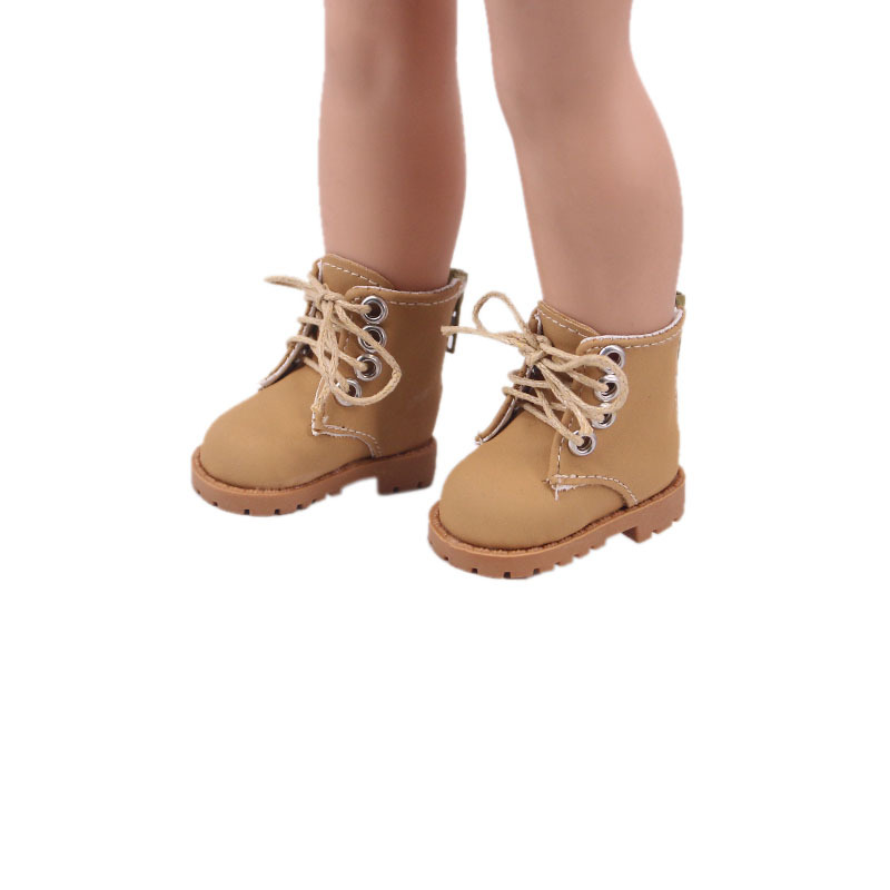 新款14.5寸美国女孩娃娃配件娃娃高帮系带咖啡色靴子厂家直售批发