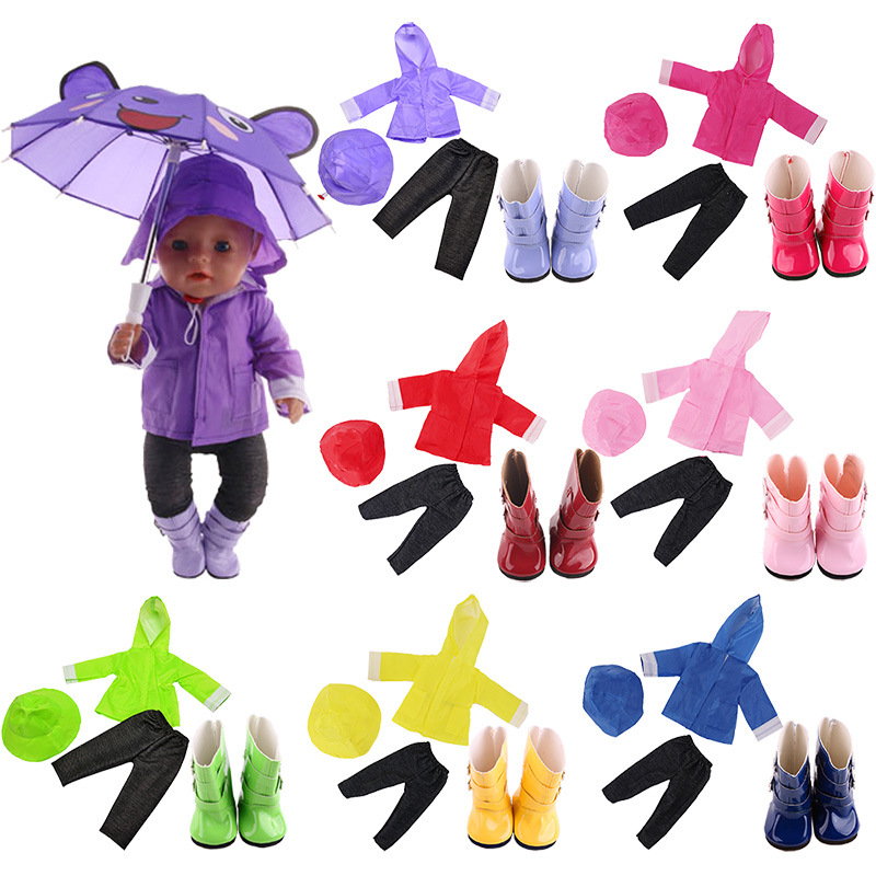 18インチアメリカンガール服アメリカンガール人形レインコート + パンツ + 帽子3点セット