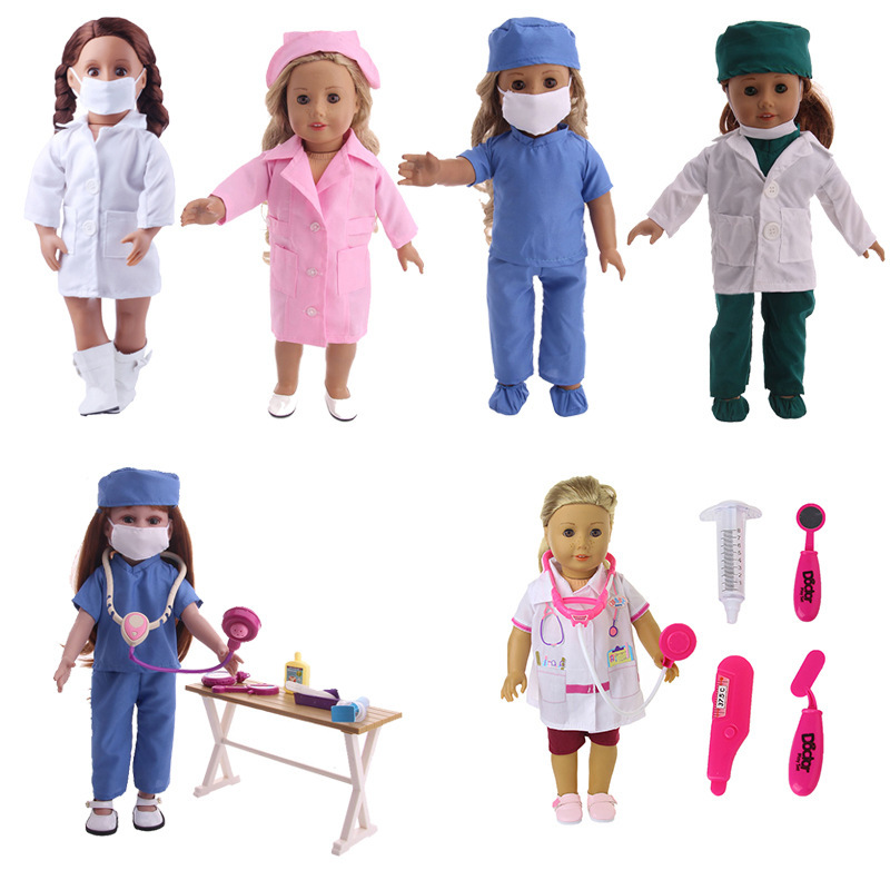 18インチのアメリカの女の子の人形の服の人形の医者の服のセットのアメリカの人形の部品の人形の着せ替えの服