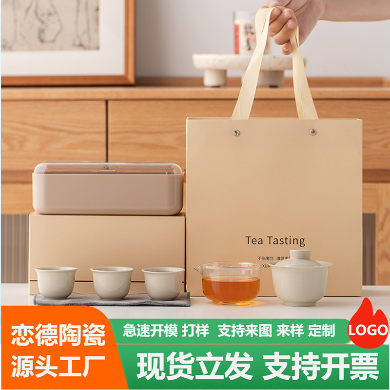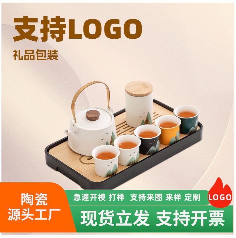 トラベルティーセットポータブルクイックカップアウトドアキャンプセットティートレイ付きポット3カップセラミックギフトカスタムロゴ